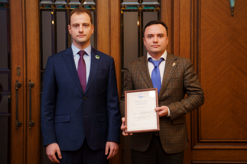Церемония награждения почётными корпоративными наградами холдинга «СОЦИУМ» по итогам 2025 года. Торжественное вручение Грамот Акционера. 26 декабря 2025 года